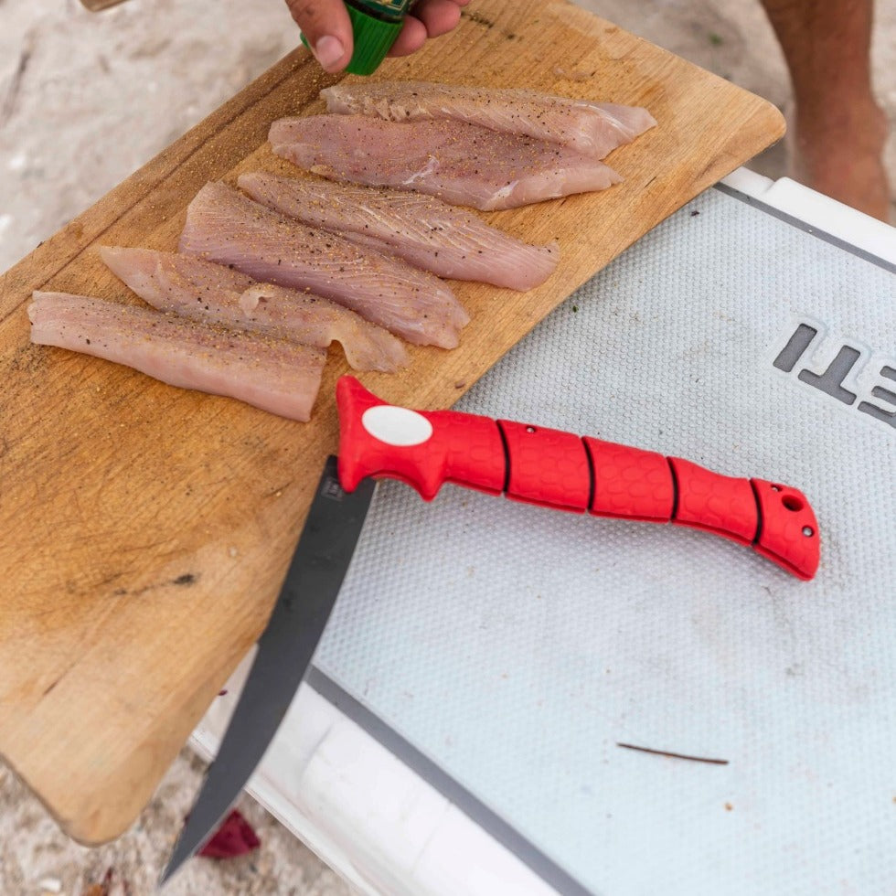 Unfold perfection with Bubba's 7” Tapered Flex Folding Knife. Derived from their iconic 7” Tapered Flex, the NEW 7” Tapered Flex Folding Knife is designed for anglers who live a lifestyle of adventure and require a highly portable folding fillet knife that is built to last a lifetime while being versatile enough to handle any salt or freshwater fish. Whether you want to keep it in your pocket, in your tackle box, or on the boat, this knife easily folds down for effortless storage. The 7” Tapered Flex Folding Knife features our signature Bubba non-slip grip with a titanium-nitride coated, high carbon stainless steel blade that has the same flex as our 7” Tapered Flex. It is built with a premium lockback mechanism for a strong hold during use. This 7” Tapered Flex Folding Knife also comes with a sheath and lanyard hole for added security.