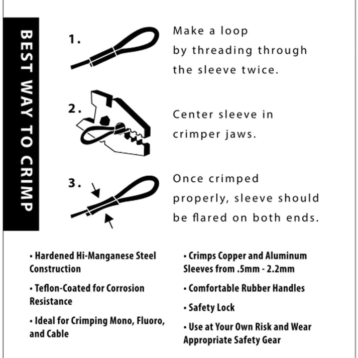 - 3 Jaw positions fit brass, copper, and aluminum sleeves from .8-2.2mm