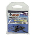 Don't let the name fool you! AFW Mighty Mini Stainless Steel Snap Swivels are 3x stronger than Brass Swivel which allows for a smaller size compared to the brass snap swivels. This allows for a smaller profile, less drag and more bites! Fish like the pros and get the Mighty Mini Stainless Steel Snap Swivels today and increase the hook up!