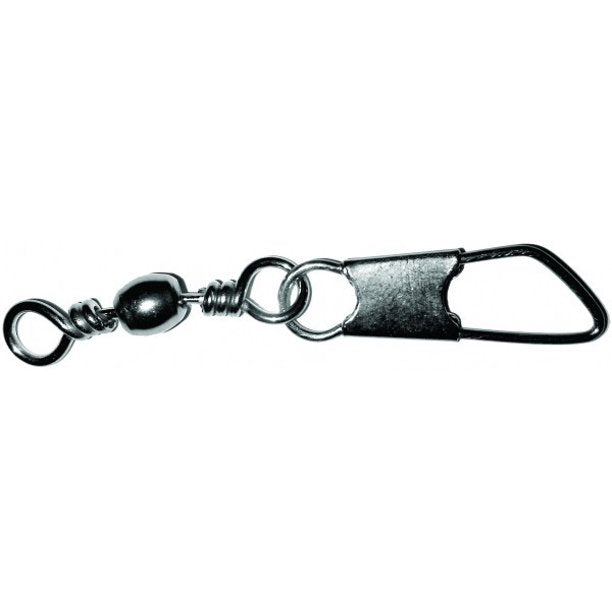The Mustad Barrel Swivel with safety snap is made from high quality materials and will not let you down. Makes changing your lure easy. When choosing a swivel always go small. Pick a swivel that matches the breaking strength of your line. This will give the best performance and presentation. When tying your fishing line to the swivel eye make sure to center the knot, as this will ensure the best rotation. Made from brass, for either saltwater or freshwater use. Black nickel finish.