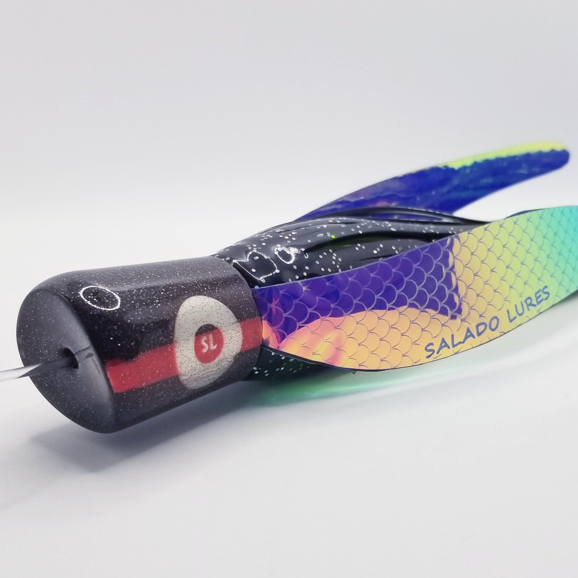 This lure is machined from solid 6061 aluminum stock and coated with an extremely durable powder coat. 11" lure length.