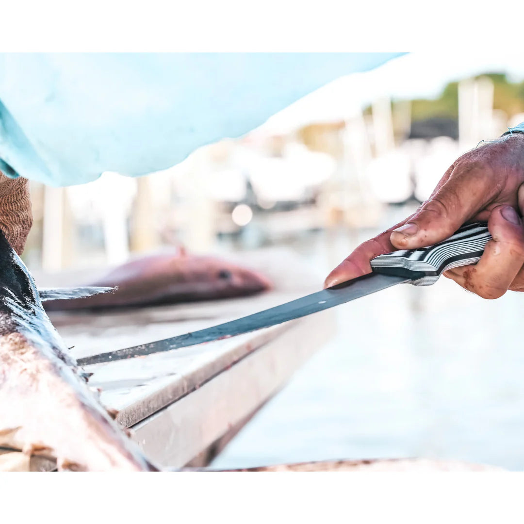 The ultimate processing blade. The 9" Medium Flex provides utmost control for the one cleaning giant fish. Used for loining out jumbo tunas, coasting through big groupers, and cleaning swordfish, this is the SORD big dog. The 130W of the SORD lineup. This blade has the same 9.5" cutting edge and deep belly as the 9" Flexy, but with a significantly stiffer blade for doing the dirty work. Whether you prefer a less flexible blade or your catch requires a stiffer one, this blade is a true beast that can punch through not only the toughest and thickest fish, but also the biggest fish that swim the world's waters. Use it however you need to, because it will make your job at the cleaning table a whole lot easier.