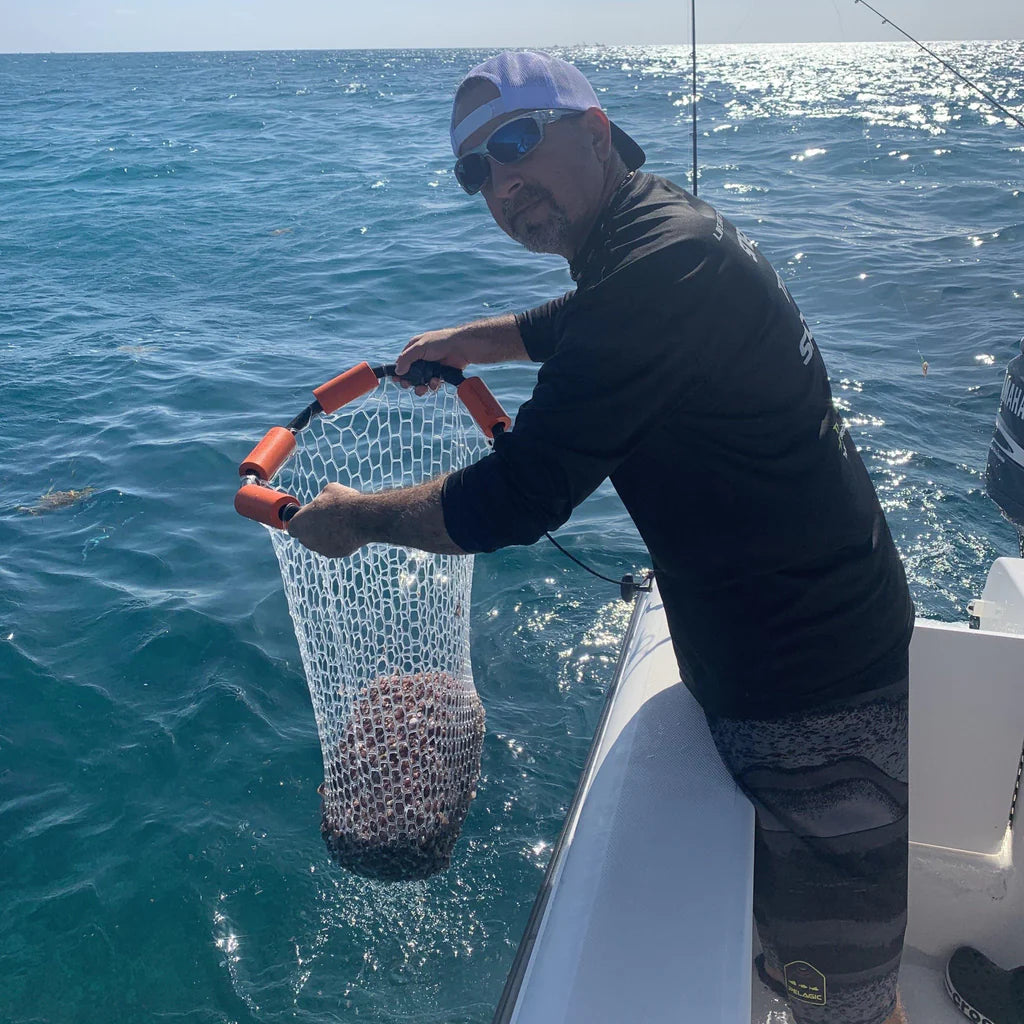 The ChummyHoop is a next-generation chum bag/net. It's a simple patent-pending design that allows it to collapse for easy storage and rubber netting lets it practically clean itself with a few shakes when empty in the water (always rinse with fresh water when back on land). Holds up to two 25lb. blocks of chum and floats by itself. With the ChummyHoop, you have a strong and sturdy chum hoop capable of holding multiple chum blocks, the netting material does not allow the stench and stink of the chum to permeate the netting material and is collapsible for easy storage. The ChummyHoop truly is the last chum hoop you will ever need to buy.