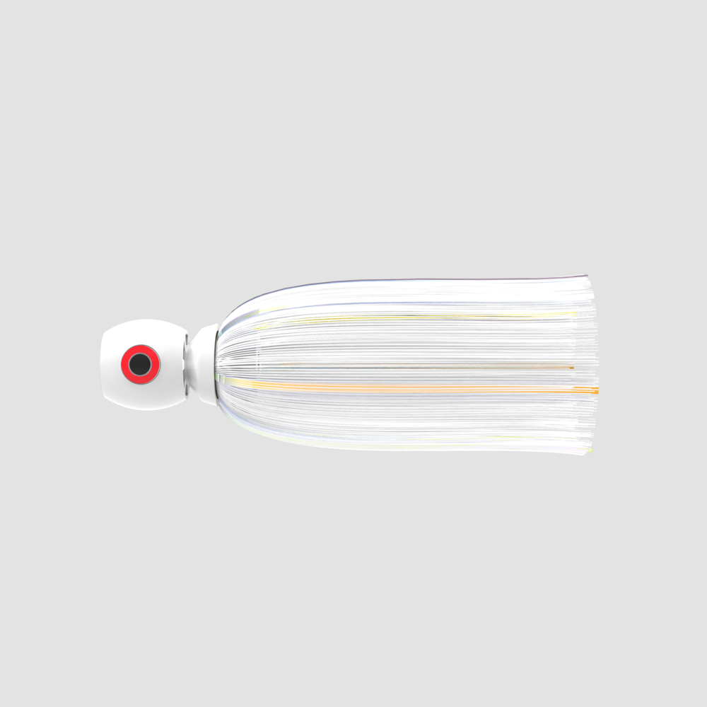 Run this lure naked or troll it in front of some Meat such as Ballyhoo. There is a large cavity in the read end of the lure head to allow for the lure to go over the beak of ballyhoo.